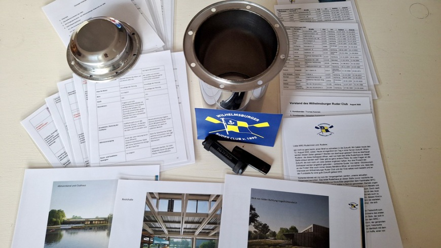 Dies ist keine Urne. Sondern eine Zeitkapsel. Aber was ist eine Zeitkapsel? Sie ist eine Art Flaschenpost in die Zukunft, ein Behälter, der demnächst unter dem Bootshaus vergraben sein wird und den hoffentlich diejenigen finden, die - sagen wir im Jahre 2112 - das noch künftige neue Bootshaus dann wegen Baufälligkeit abreißen werden. Wir wünschen uns, so steht es auch im hinterlegten Brief, dass eines fernen Tages dort erneut ein Ruderbootshaus stehen soll – und keine Tiefgarage. Und was ist noch in der Zeitkapsel? Sehr groß ist sie ja nicht, dennoch passte einiges hinein: Zeichnungen vom Bootshaus, unser Selbstverständnis, ein Mitgliederverzeichnis, unser Bootsbestand, Logos, historische Fotos, über die Jugend, Presseartikel, Fahrtenbücher, ein aktuelles Hamburger Abendblatt und ein USB-Stick mit Hunderten von Bildern und Texten von unserer Website, die einen bunten Eindruck vermittelt über unseren Ruderclub in den frühen 2000er Jahren und davor: Denn selbstverständlich fehlt auch unsere Festschrift zum 125-jährigen Bestehen des WRC nicht. Unsere Nachfahren werden einiges zu tun haben. Falls sie die Zeitkapsel überhaupt finden. Denn statistisch gesehen werden angeblich nur mickrige drei Prozent der Hinterlassenschaften entdeckt. Wir selbst haben ja auch nichts finden können, obwohl es hieß, es sei etwas vergraben unter dem Bootshaus. Um die Chance für die Nachkommen zu erhöhen, wird im neuen Bootshaus deshalb ein kleiner Hinweis sein, wo sich die Zeitkapsel befindet – unterhalb der Betonsohle.