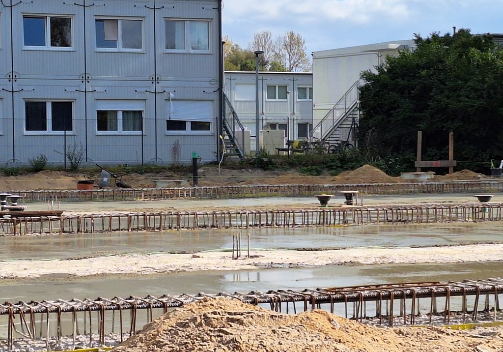 Was machen eigentlich Eisenflechter? Sie verarbeiten Stahl für das Bauwesen zu Bewehrungen und Stahlmatten, indem sie Stahl zuschneiden, biegen und flechten, um die Tragfähigkeit von Betonteilen zu gewährleisten, weiß ChatGPT. Wer sich selbst ein Bild von ihrer Arbeit machen möchte, sollte in diesen Tagen beim Aßmannkanal vorbeischauen. Der Erdbau hat den Entwässerungsgraben nahezu fertiggestellt, die Druckleitung zum Vogelhüttendeich und die Grundleitungen sind gelegt. Nun sind die Eisenflechter dran und erschaffen ein Gerüst für das Fundament. Anschließend wird der Beton dort hineingegossen. Wenn dieser dann abgetrocknet ist, wird noch ein Graben rund ums Gebäude gezogen - damit wir immer trockene Füße haben.