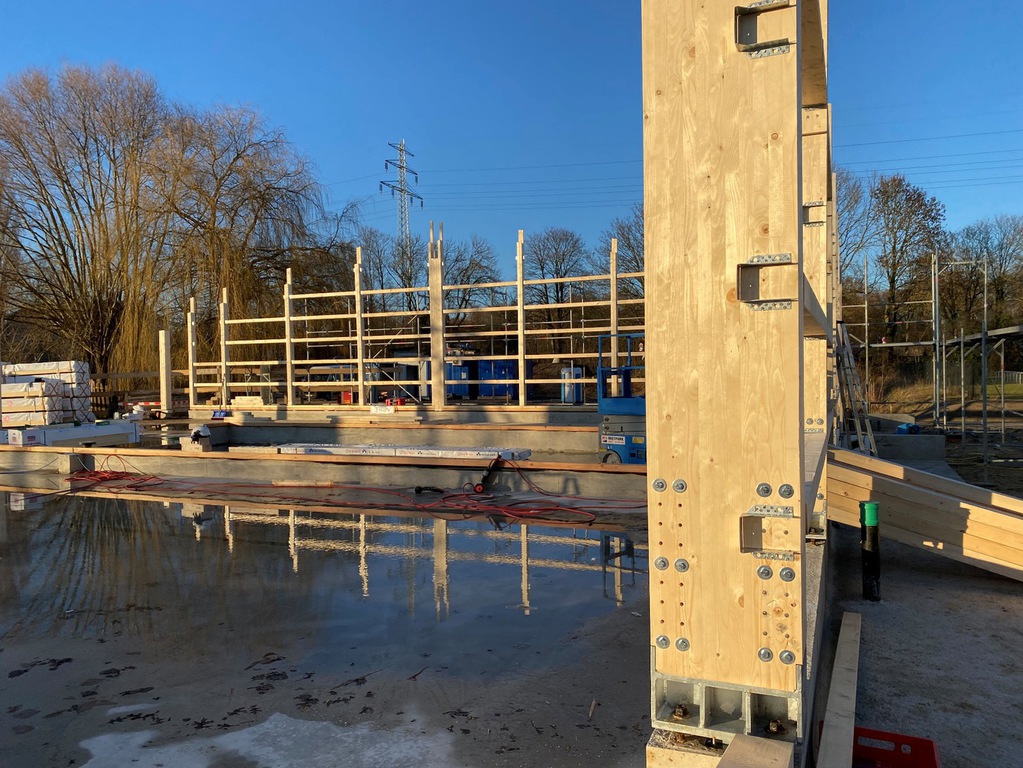 Jetzt beginnt ein neuer Abschnitt: Die Pfähle zur Gründung des Bootshauses werden demnächst in den Boden gerammt.