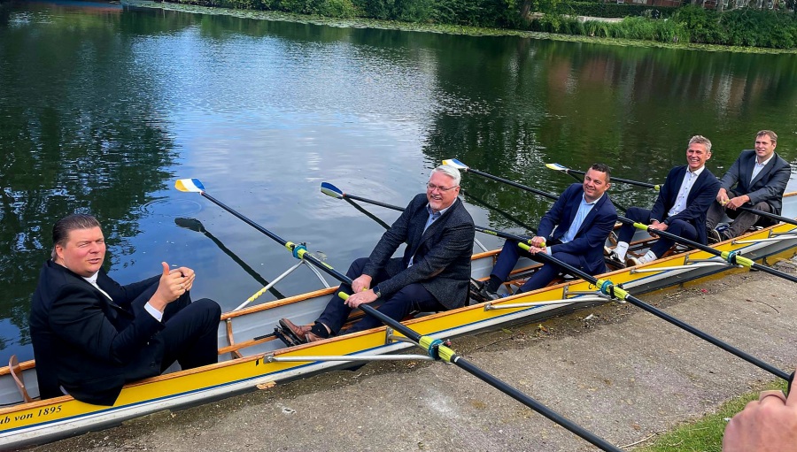 Unser Ruderclub hatte am Dienstag, den 20. August, Besuch von Dirk Kienscherf, Fraktionsvorsitzender der SPD, und Michael Weinreich, SPD-Bürgerschaftsabgeordneter. Ihr Besuch im Rahmen ihrer politischen Sommertour war für die Clubhaus-AG ein willkommener Anlass, um über den Stand unseres Bauvorhabens zu informieren. Wir konnten darstellen und davon überzeugen, wie wichtig es für den Verein ist, dass der aktuelle Zeitplan: Abriss Ende des Jahres, dann Bauphase und Neueröffnung zum Frühjahr 2026, eingehalten wird. Nur so müssen wir nur eine Saison ohne Clubhaus überbrücken. Die beiden Politiker wollen sich für die Einhaltung des Zeitplans einsetzen.